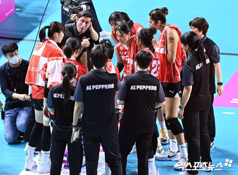 접전서 흥국생명이 이원정의 서브에이스, 옐레나의 오픈으로 9-7 달아났다. 페퍼저축은행은 야스민의 오픈과 박정아의 후위공격, 10-9 맞불을 놨다. 이후 박정아의 공격이 연이어 통하지 않았다. 그 사이 흥국생명이 옐레나의 연속 후위공격으로 14-12, 멀어졌다. 강약 조절이 돋보였다. 결국 페퍼저축은행이 작전타임을 요청했다. 야스민의 후위공격과 상대 이원정의 네트터치로 14-14가 됐다.