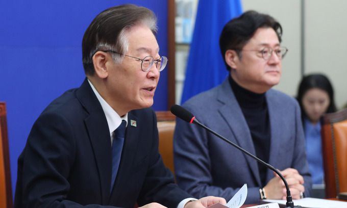 이재명 더불어민주당 대표가 23일 서울 여의도 국회에서 열린 최고위원회의에서 발언하고 있다. 뉴시스