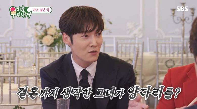 이후 김희철은 결혼 고사지를 꺼내면서 "요즘에는 옛날 마인드로는 상상할 수 없는 게 엄청 많다"고 말했고 이에 김종국은 "미안한데 옛날 사람 만나면 안 되냐. 우리가 지금 이 나이에 20대를 만날 순 없지 않냐"며 웃었다.