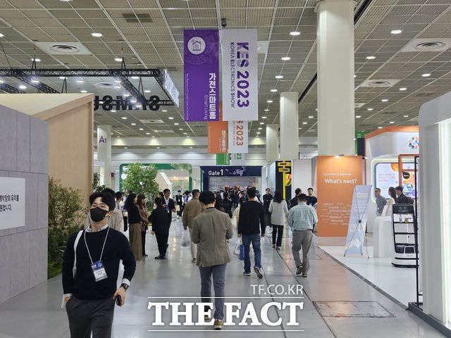[더팩트|최문정 기자] 국내 최대 가전·IT 관련 전시회인 한국전자전 2023(이하 KES2023)이 24일 화려한 막을 올렸다. 오는 27일까지 이어지는 올해 행사에는 삼성전자와 LG전자를 비롯해 글로벌 10개국 480개사(1200부스)가 참가해 혁신기술이 서로 연결되고, 사용자와 소통하는 '앰비언트(Ambient)' 기술과 생태계를 선보일 예정이다.