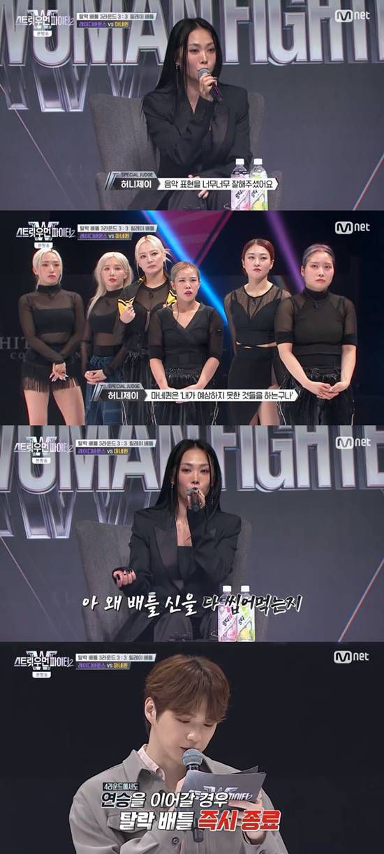 탈락 배틀 1라운드는 히든 배틀로 진행됐다. 1라운드의 승자는 마네퀸. 레이디바운스를 선택한 허니제이는 "일단은 끝나고 나서 깨달았다. 제가 승패를 결정해야 한다는 것을"라며 배틀에 완전히 몰입했다고 전했다.