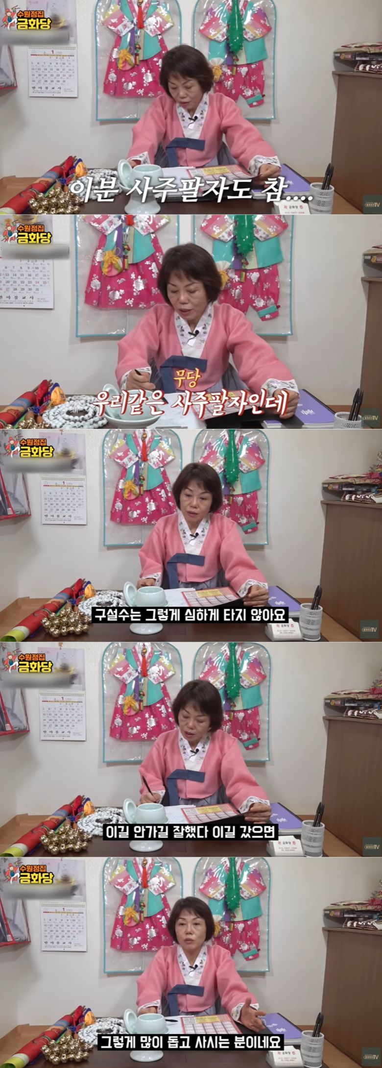 앞으로에 대해 그는 "꾸준하다. 탄탄대로다. 구설수도 그렇게 심하게 타지 않는다"며 "이 분은 무속인을 안 하길 잘했다. 이 길 왔으면 힘들었을 텐데 영화 쪽으로 가서 괜찮다. 무명시절이 길었겠지만 그런 기억들을 떠올리며 주변에 베풀고 돕고 사는 분"이라고 풀이했다.