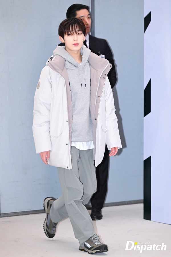 '엔하이픈' 선우는 후드와 패딩 점퍼로 겨울 패션을 선보였다. 잘생긴 비중러이 돋보였다.