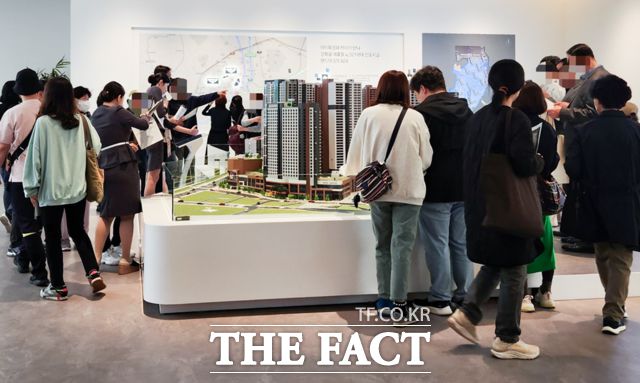 27일 오전 서울 동대문구 이문동 이문아이파크자이 견본주택은 공급 가격과 단지의 유닛을 둘러보기 위해 방문한 이들의 발걸음으로 가득 찼다. 견본주택 입구에는 조합이 제공하는 셔틀버스를 이용한 방문객들이 대기 줄을 이뤘다. 이곳은 올해 2월부터 '분양 예정 단지' 목록에 올랐지만 주택시장 침체기가 이어지면서 공급 일정이 밀렸다.