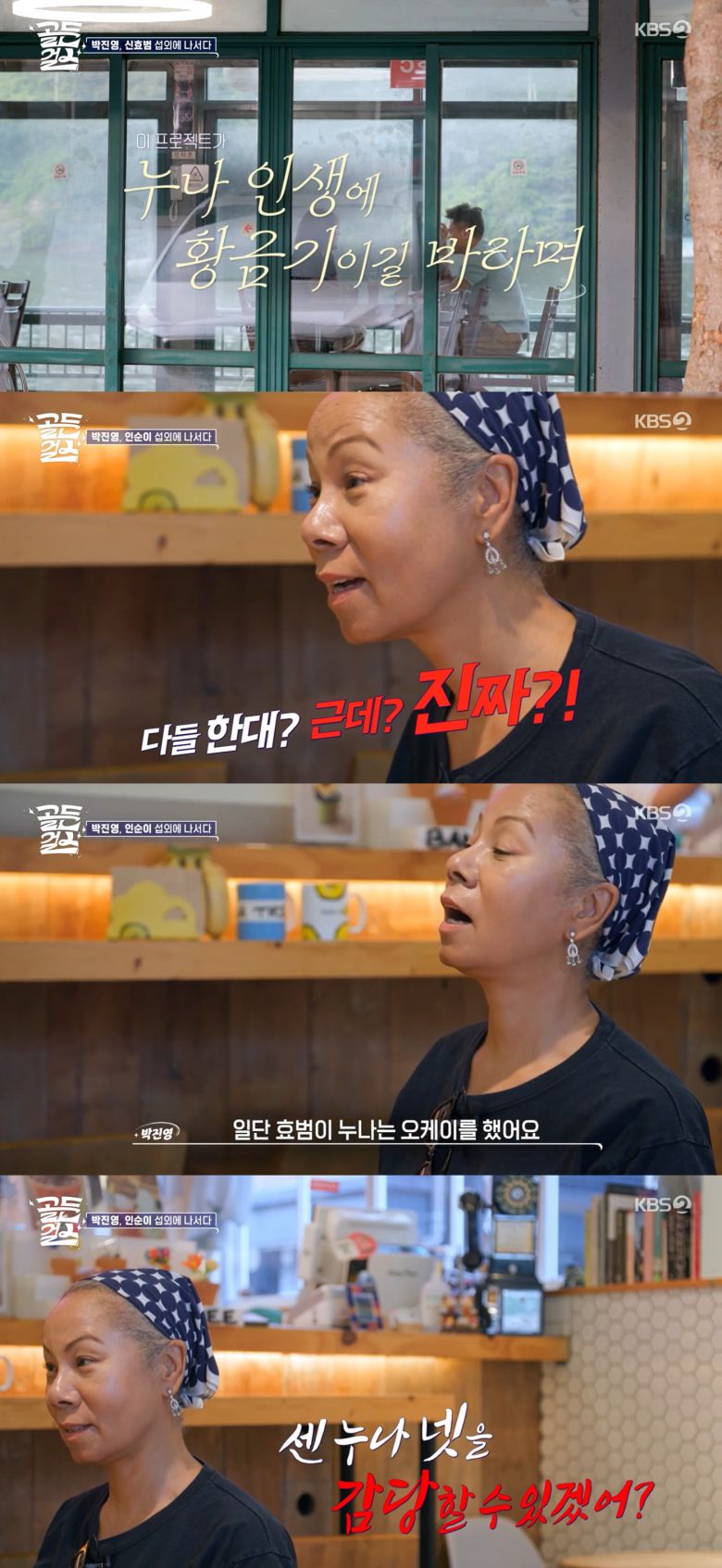 이에 박진영은 "나는 이번이 누나들 인생에 황금기였으면 좋겠다. 내 머릿속에 안 그려지는 건 안 한다. 누나들이 할 수 있는 도전이고 할 수 있도록 몸을 만들어 줄 거다. 체격이나 자세도 다 고쳐놓고 근육을 만들어 놓으면 할 수 있다. 누나 이 활동이 끝나고 나면 협착증이나 근막염이 다 사라질 거다. 누나 몸을 고쳐줄게"라고 약속했다. 결국 신효범은 합류를 결정했다.