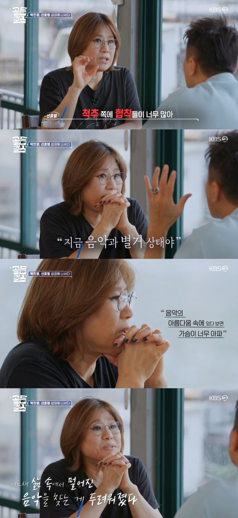 이어 "삶에서 음악이 어떻게 된 건가"라는 박진영의 물음에 "지금은 약간 음악과 별거 상태"라며 "음악의 아름다움 속에 있다 보면 가슴이 너무 아프다. 이글이글 탄다. 이제 뭔가 잘할 수 있을 때 같다. 나를 흥분시키는 음악을 하고 싶다"라고 답했다.