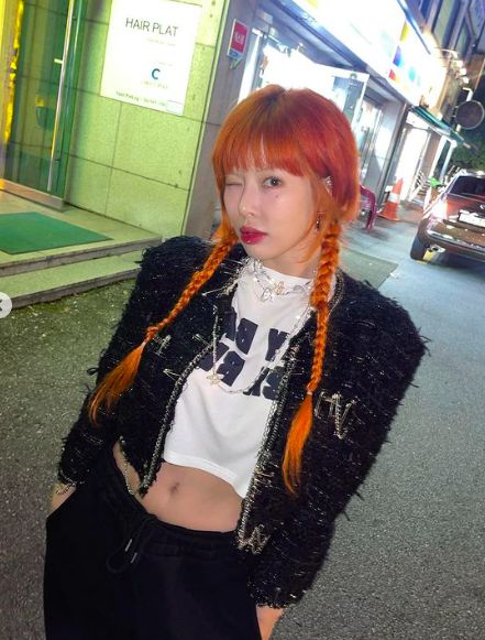 28일 현아는 별다른 멘트 없이 하트 이모티콘과 함께 사진을 올렸다. 현아는 기존에 어두웠던 머리 색에서 진한 레드 컬러로 변신한 모습이 담겨있어 눈길을 끌었다. 그리고 트레이닝 바지에 크롭 티를 입고 트위드 자켓으로 믹스 앤 매치를 선보여 자신 만의 독특함과 힙한 매력을 동시에 뽐냈다.