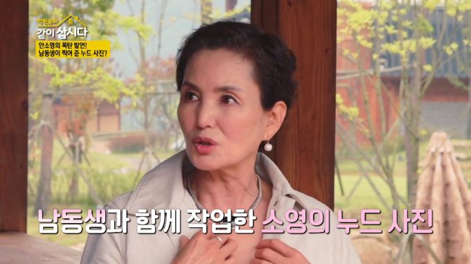 충격에 빠진 안문숙이 "남동생이 언니 알몸, 누드를 찍었는데 안 창피했냐"고 묻자 안소영은 "전혀. 동생한테 알몸 보이는 게 전혀 이상하지 않다"고 답했다.