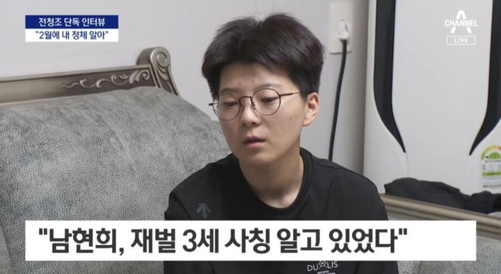 [서울=뉴시스] 펜싱 국가대표 출신 남현희(42)의 재혼 상대였던 전청조(27) 씨가 30일 채널A '뉴스A'와 인터뷰했다. (사진= 채널A '뉴스A' 캡처) 2023.10.30. photo@newsis.com *재판매 및 DB 금지 |