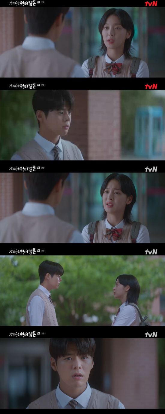 지난달 31일 방송된 tvN 월화드라마 '반짝이는 워터멜론' 12회에서는 하은결(려운 분)이 온은유(설인아)가 미래에서 온 어른세경(이소연)의 딸이라는 사실을 모른 채 사랑에 빠진 모습이 그려졌다.