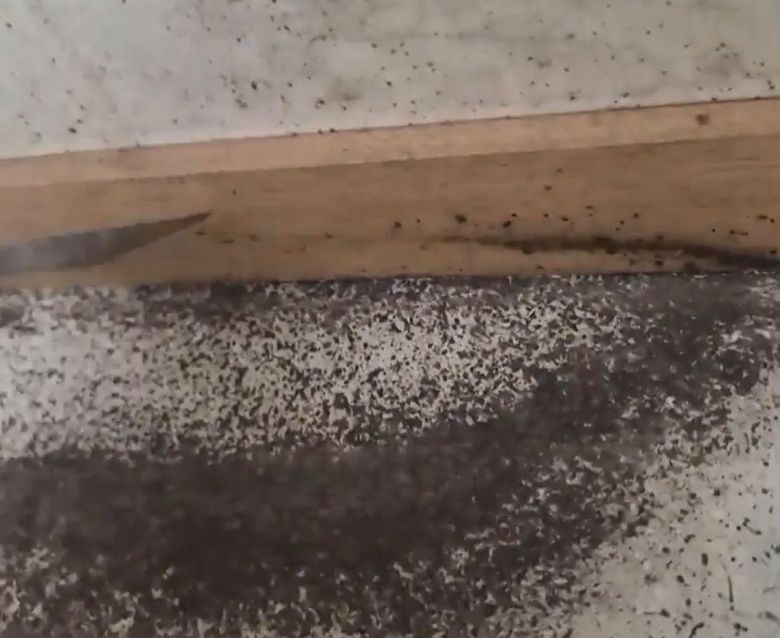 서울의 한 고시원 벽지를 뜯어내자 빈대와 함께 빈대 배설물로 오염된 벽지 안쪽 모습이 드러나는 모습. /원스톱방역 제공