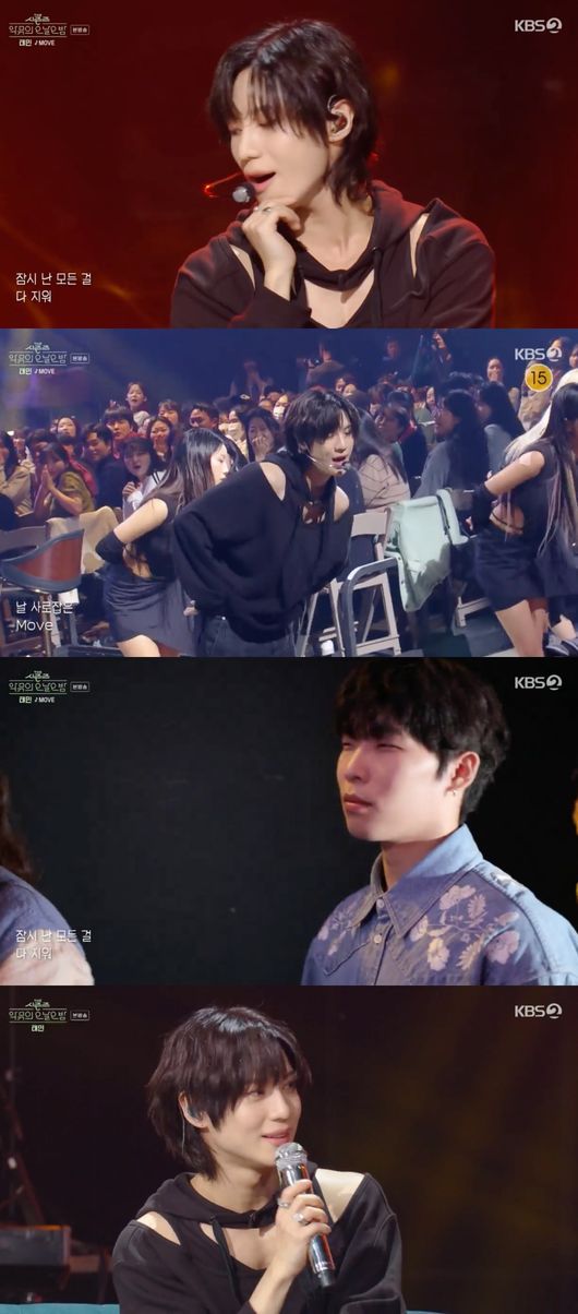 태민은 솔로 히트곡 '무브(MOVE)'를 라이브로 선보이며 등장과 동시에 객석의 환호를 자아냈다. 특히 그는 무대 중간 하이라이트 파트에서 객석으로 내려가 객석을 열광케 했다.