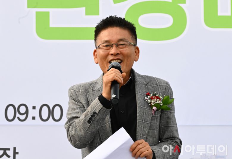 4일 오전 서울 여의도 한강공원 이벤트광장에서 열린 '2023 밤섬 환경마라톤 대회'에서 송봉규 아리수환경 대표가 대회사를 하고 있다. 아리수환경(주)이 주최하고 (사)대한생활체육연맹이 주관, 아시아투데이와 이브자리, 슬립앤슬립이 후원한 '2023 밤섬 환경마라톤 대회'는 서울시 최초 람사르 습지인 밤섬 습지의 중요성과 한강의 아름다움을 알리고자 올해 처음으로 개최됐다. /정재훈 기자 |