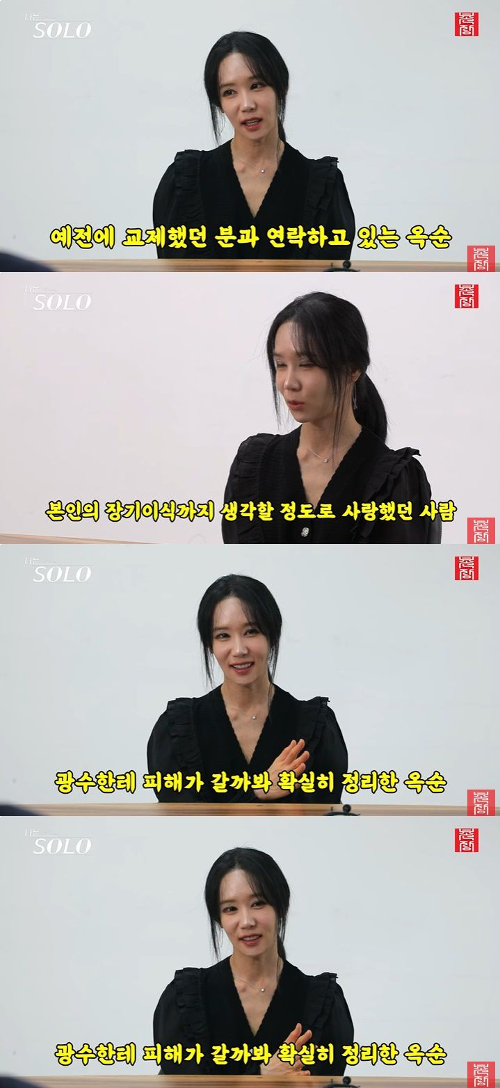 그러나 옥순은 "지금 옥순의 남자는 누구냐"는 말에는 광수가 아닌 전 연인을 언급했다. 그는 "지금 딱 정확히 사귀고 있는 건 아니고 예전에 진지하게 결혼까지 하려고 했던 분인데 6년 전 내가 돌싱되고 나서 회복기간 1년 정도 있다가 만난 분이다, 그때 헤어졌었다, 3,4년동안 되게 사랑했어서 (그분이)힘들고 몸이 아프셨는데 내가 장기이식까지 해주려고 헀던 분이었다, 처음으로 인생에 남자를 되게 사랑했던 사람이다, 그렇게 헤어지고 나서 서로가 못 잊고 있다가 (내가)출연하고 나서 우연찮게 주위에서 내가 나온다고 얘기가 많이 들리니까 연락이 닿았다"고 말했다.