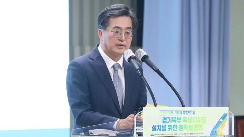 2022년 6월 24일 경기도청 북부청사에서 열린 경기북부 특별자치도 설치를 위한 정책토론회에서 축사하는 당시 김동연 경기도지사 당선인./경기도지사직 인수위원회 |