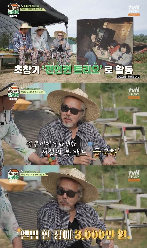 이날 전인권은 “원래 포크 록 음악으로 했다. 혼자서도 하고 함춘호 하고 초창기 활동하다가 그 친구는 밴드로 가고 허성욱이라고 피아노 치는 친구를 소개해줬다. 그 친구랑 조덕환, 한춘근과 시작한 게 들국화의 시작이다”고 설명했다.