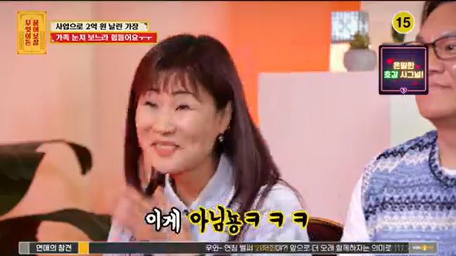 사업으로 2억원을 날린 후 가족에게 눈치 본다는 사연자가 출연, 서장훈은 "이수근은 돈을 많이 벌어도 눈치본다"고 하자 이수근도 "나도 엄청 눈치본다"고 인정해 웃음을 안겼다.