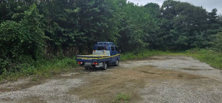 10대 남매가 숨진 채로 발견된 경남 김해 한 야산에 세워진 1톤 화물차 모습. 사진=뉴스1, 독자제공 |