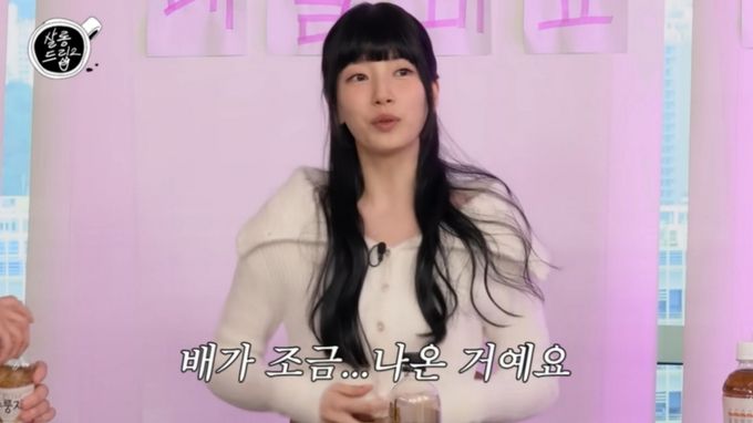 이를 듣던 수지는 “근데 드라마 보시면 아실 텐데 저도 (살 때문에) 한 번 튄 적이 있다. 극 중 두나가 크롭이나 민소매를 많이 입는다”며 “제가 촬영 중간에 많이 먹어서 배가 조금 나왔다. 다행히 이전 신이 미역국 먹는 장면이라 ‘이건 괜찮겠다’고 생각했다”고 말했다.