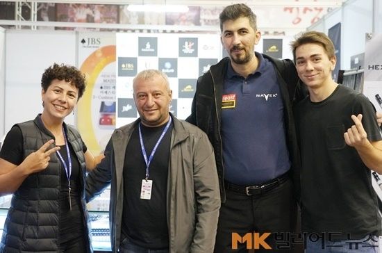 2023 서울3쿠션월드컵 홍보부스에서 만난 튀르키예 선수 와 관계자들. 맨 왼쪽이 무랏 나시 초클루 선수 부인이고, 맨 오른쪽이 부락 하스하스 선수다. |