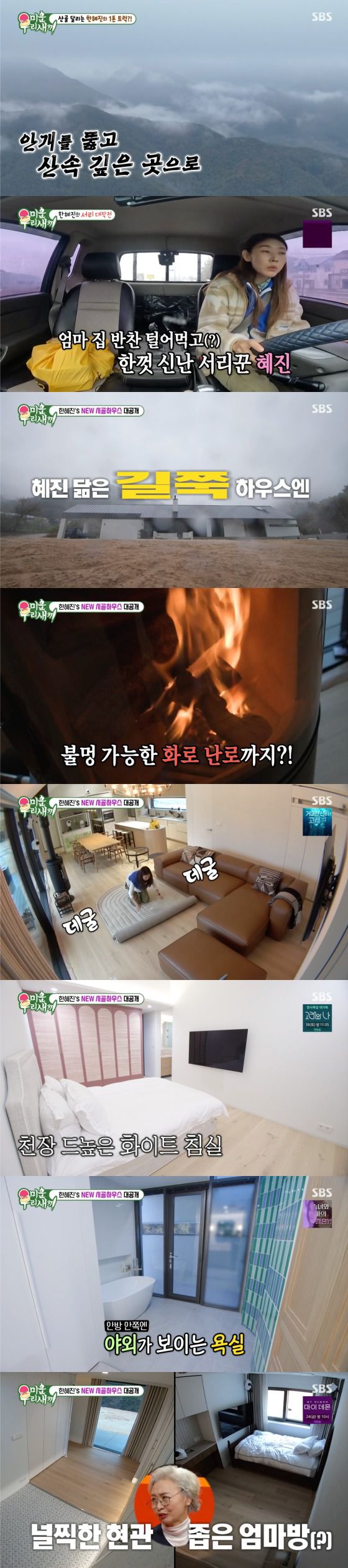 이날 한혜진은 직접 설계한 홍천 집을 공개해 이목을 끌었다. 그는 직접 산 1톤 트럭을 끌고 어머니 집에 들러 반찬과 먹을거리를 챙겨 외진 곳으로 향해 패널들의 궁금증을 자아냈다. 한혜진이 도착한 곳에는 깔끔한 한혜진의 새로운 '홍천 집'이 있었다. 갑자기 홍천에 집을 지은 이유를 묻자 한혜진의 어머니는 "평소에도 엄마 집에 자주 왔다, 있어보고 좋으니까 살아야겠다 싶어 지은 것 같다"고 답했다.