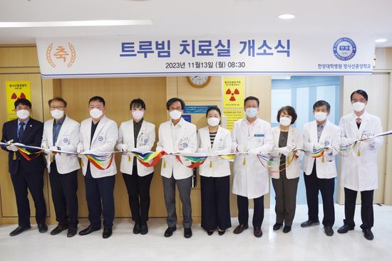 [라포르시안] 한양대학교병원(원장 이형중)은 지난 13일 신관 2층에서 최첨단 방사선 치료기를 갖춘 '트루빔 치료실 개소식'을 개최했다고 14일 밝혔다. 이날 행사에는 이항락 부원장, 김희진 기획조정실장, 권오균 운영지원국장 등 주요 보직자와 관계자가 참석했다.