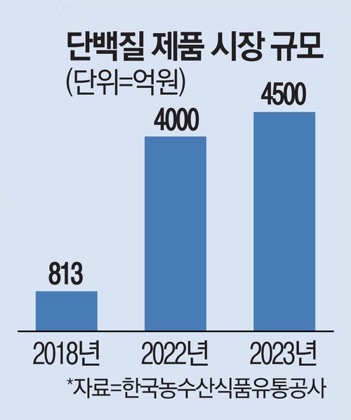 한국농수산식품유통공사(aT)에 따르면, 단백질 제품 시장규모는 2018년 813억원에서 올해에는 4500억원으로 크게 늘어날 전망이다.