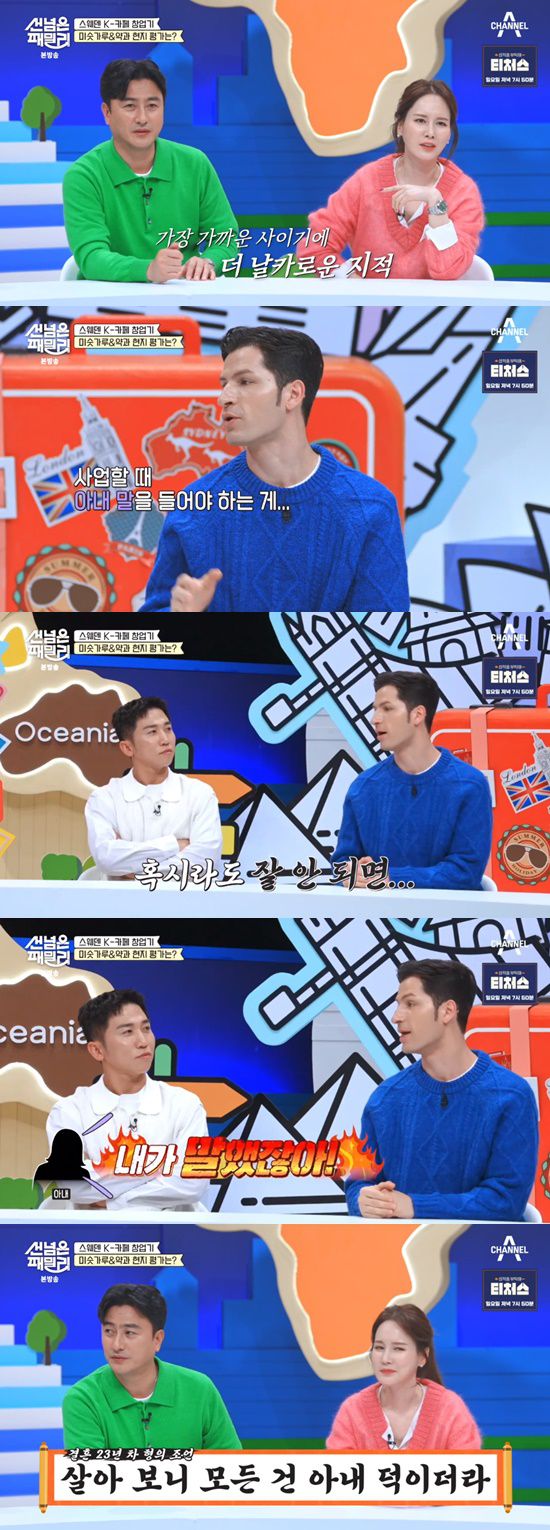 이를 보던 안정환은 "아내가 가장 정확하게 얘기해 줄 수 있다"고 조언했다. 알베르토는 "사업할 때 와이프 말 들어야 하는 게, 만약 잘 안 되면 '내가 말했잖아'라고 나오기 때문"이라고 덧붙였다.