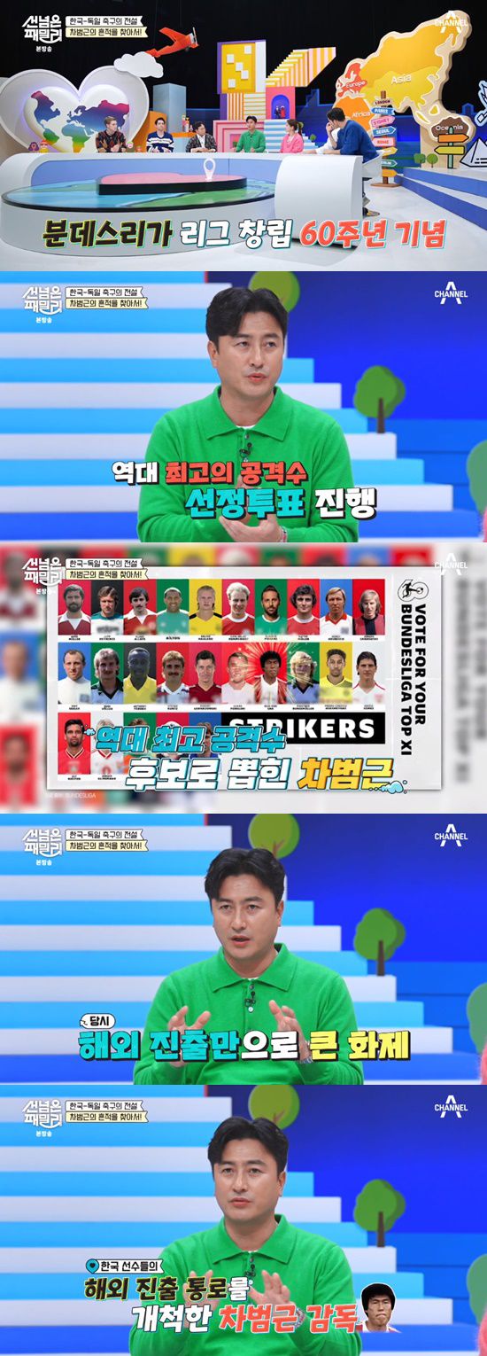 안정환은 독일 리그에서 활약한 차범근 감독에 대해 "분데스리가 리그 창립 60주년을 맞아 역대 최고의 공격수를 뽑는 투표를 했는데, 그 후보에 차범근 감독님도 포함됐다. 분데스리가에서 가장 많이 경기를 뛰셨던 분"이라고 말했다.