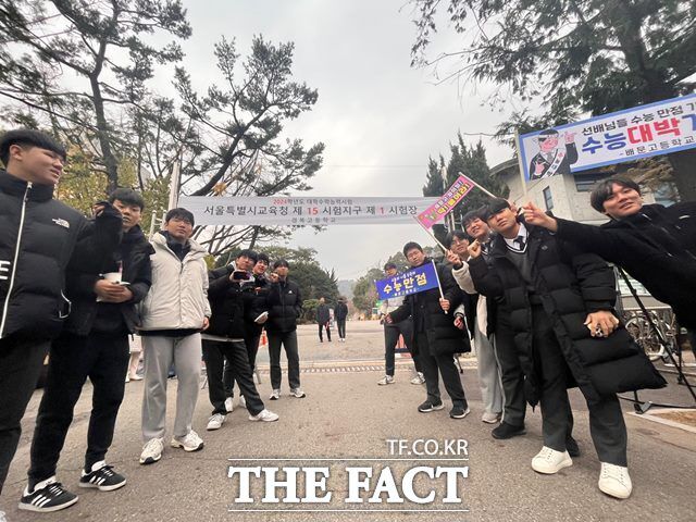 16일 2024학년도 대학수학능력시험 서울시교육청 제15시험지구 1시험장 경복고등학교 앞에서 응원전이 열리고 있다. /황지향 기자 |