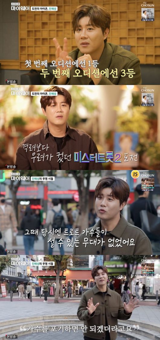 또 진해성은 무명 시절 버스킹 장소였던 홍대를 찾았다. 그는 “그때 당시엔 트로트 가수들이 설 수 있는 무대가 없었다. 방송도 없고 무대도 없다 보니 거리에 나와서 노래할 수밖에 없었다”라며 자신이 트로트 버스킹의 창시자라고 밝혔다. 그러면서 “길에서 노래하는데 취객이 마이크를 뺏으면서 시끄럽다고 하더라. 그러면 마이크 비싸게 주고 산 거라 부서지면 안 된다고 애걸복걸했다”라며 힘들었던 시절을 떠올렸다.