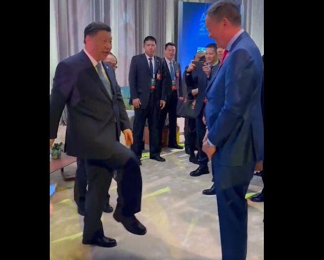 통역이 시 주석에게 중국 대표팀이 월드컵 예선에서 타이를 2대1로 이겼다고 설명하자, 시 주석은 “정말이냐”고 되물은 뒤 “그런데 내 생각에는 요행이 크게 작용한 것 같다. (나는) 우리 축구 국가대표팀 수준에 확신이 없다”고 말했다. 이어 “기복이 있다, 기복이 있다”고 웃으며 말했다. 시 주석 옆에 외교 분야 핵심 측근인 왕이 중국 공산당 중앙정치국 위원 겸 외교부장(장관)이 함께 서서 웃는 등 화기애애한 분위기였다.