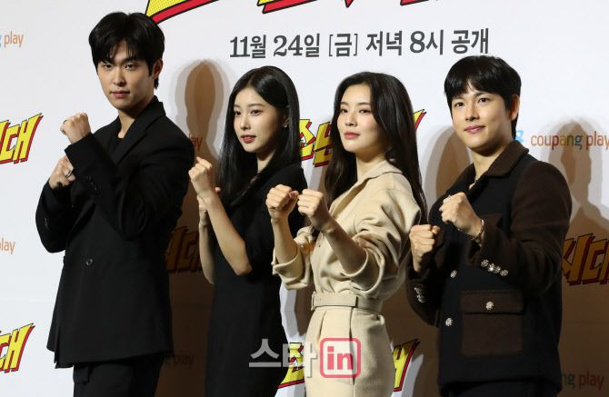 [이데일리 스타in 방인권 기자] 배우 이시우와 강혜원, 이선빈, 임시완(왼쪽부터)이 20일 서울 역삼동 조선 팰리스 강남 호텔에서 열린 쿠팡플레이 오리지널 드라마 '소년시대' 제작발표회에 참석해 포토타임을 갖고 있다.