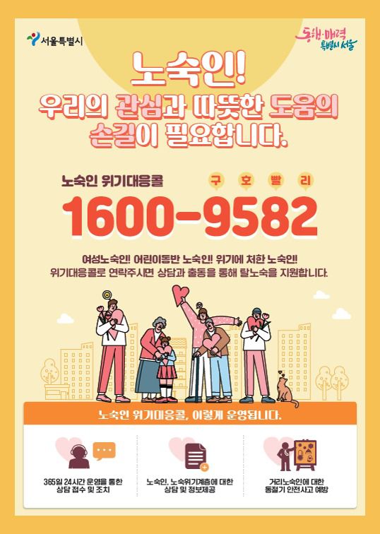 도움이 필요한 노숙인을 발견한 시민 누구나 신고할 수 있는 노숙인 위기대응 콜센터도 연중무휴로 운영한다. 특히 사고 위험이 높은 겨울철 특별보호 대책기간에는 현장출동기관을 하는 등 비상체제로 운영할 예정이다.