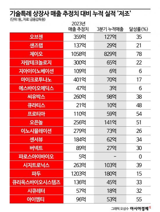 논란의 기술특례 상장사, 매출 달성률 평균 32% 불과…실적 부풀리기 후유증?