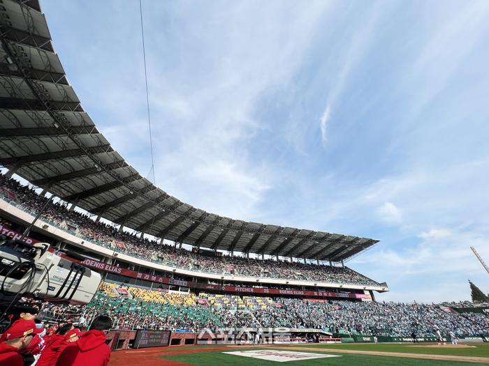 22일 인천 SSG 랜더스필드에서 열린 2023 KBO리그 SSG 랜더스와 NC 다이노스의 준플레이오프 1차전에서 만원을 이룬 관중들이 가을 야구를 즐기고 있다. 2023. 10. 22. 문학 | 박진업기자 upandup@sportsseoul.com |