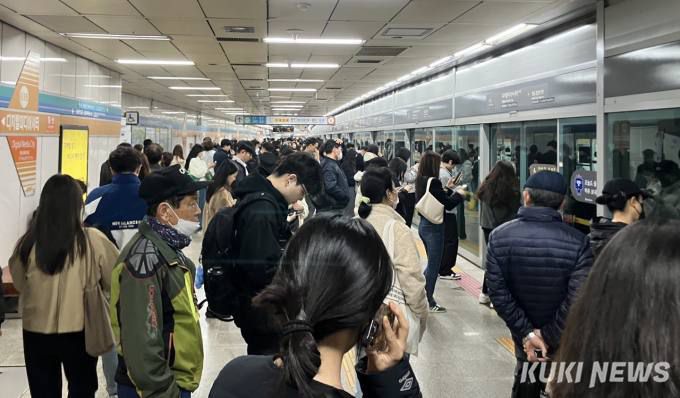 서울교통공사 민주노총 소속 노동조합이 경고파업에 돌입한 9일 오후 6시 서울지하철 6호선 디지털미디어시티역. 사진=이예솔 기자 |