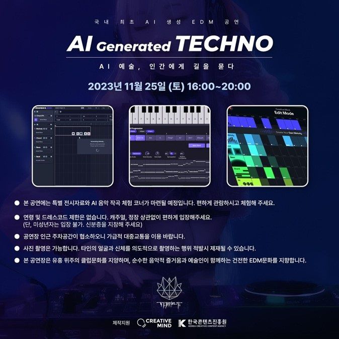 순수 AI 생성 음악만으로 이루어진 EDM DJ 공연이라는 전례 없는 EDM 음악 공연이 서울 홍대 클럽 템플에서 열린다.