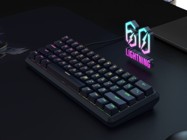 라이트닝 60은 래피드 트리거(Rapid Trigger)기능으로 입력신호에 민감하게 반응해 FPS와 같은 게임에서 정교한 컨트롤이 가능한 키보드다.