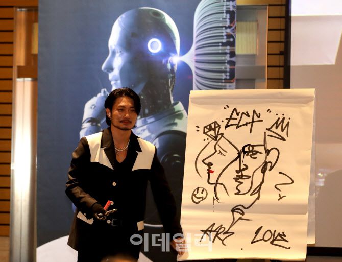 [이데일리 방인권 기자] 염동균 작가가 21일 서울 여의도 FKI타워 컨퍼런스센터 그랜드볼룸에서 열린 ‘제10회 이데일리 IT 컨버전스 포럼’에서 ‘오프닝 공연: 인공지능 Chat GPT와 함께하는 드로잉 공연’을 선보이고 있다.