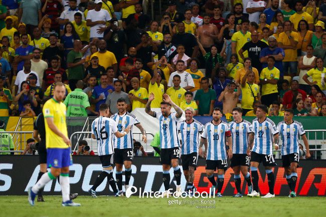 다음 상대는 라이벌 아르헨티나였다. 아르헨티나는 리오넬 메시를 앞세워 승승장구해 2022 국제축구연맹(FIFA) 카타르 월드컵에서 우승을 차지했고 이후 남미 예선 전승을 달리며 월드컵 분위기를 이어갔다. 그러던 중 우루과이에 0-2로 패하면서 연승이 끊겼다. 메시를 비롯해 모든 선수들이 무기력했고 우루과이에 좀처럼 패하지 않던 상황이라 충격이 컸다.