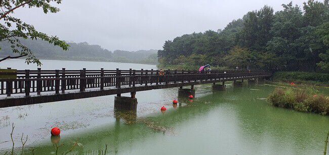 비가 내리던 2023년 9월15일 오전, 시민들이 광주 풍암호수 제1목교를 우산을 쓴 채 걷고 있다. 풍암호수 둘레길은 비가 내려도 찾는 이가 많을 정도로 광주의 대표적인 도심 휴식처다. 정대하 기자 daeha@hani.co.k |