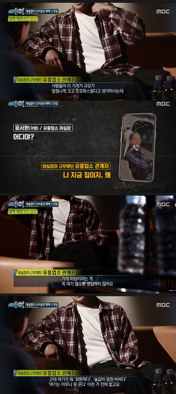 [스포츠투데이 백지연 기자] '실화탐사대' 유흥업소 관계자가 여실장과 이선균의 관계를 언급했다.