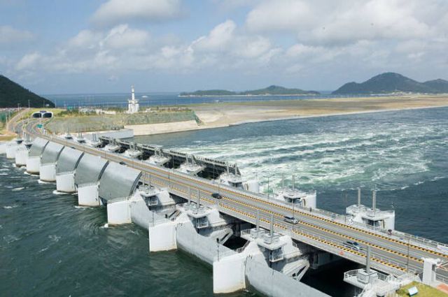 ▲새만금 방조제 갑문을 항공 촬영한 모습 ⓒ연합뉴스