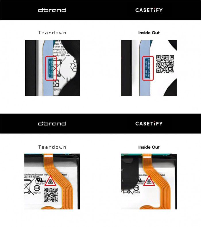 케이스티파이의 '인사이드 아웃' 케이스 시리즈는 제품 내 부품 글씨가 지워져 있거나 흐릿할 뿐 디브랜드의 '티어다운' 케이스 시리즈와 구조가 거의 동일하다.