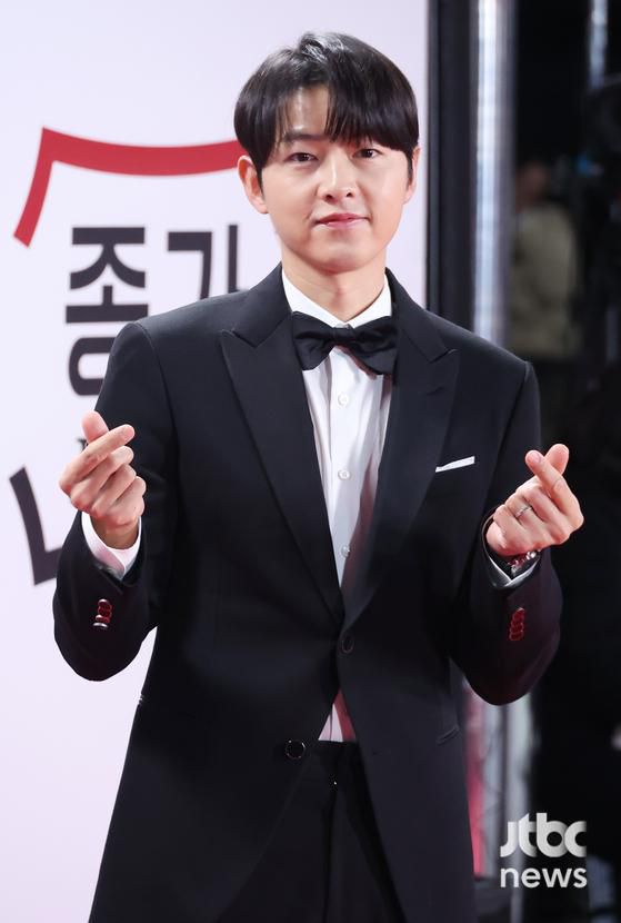 배우 송중기가 24일 오후 서울 여의도 KBS에서 '제44회 청룡영화상' 시상식에 참석해 포즈를 취하고 있다. 김현우 엔터뉴스팀 기자 kim.hyunwoo3@jtbc.co.kr (콘텐트비즈니스본부)