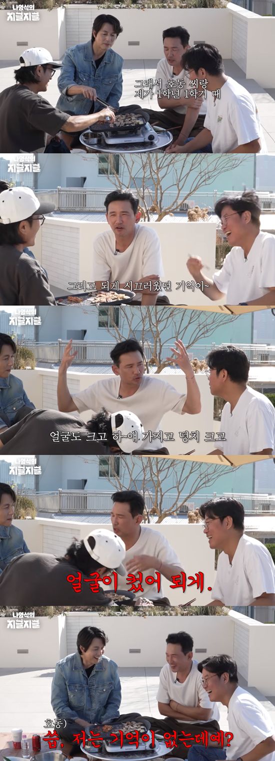 "호동이 형도 (동문이라는 사실을) 아나"라고 묻자, 황정민은 "직접 만나서 얘기했다. 그랬더니 '정민 씨 그렇습니까. 저는 기억이 없는데예?' 이러더라"라며 성대모사를 해 웃음을 안겼다.