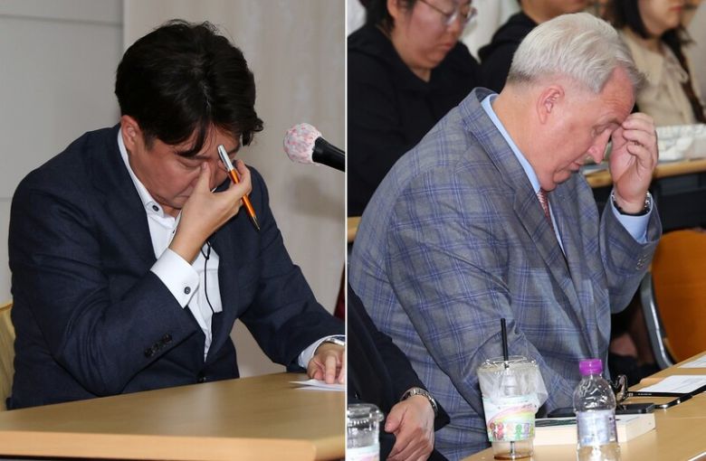 인요한 국민의힘 혁신위원장이 지난 4일 오후 부산 경성대학교에서 열린 이준석 전 대표, 이언주 전 의원이 진행하는 토크콘서트에 참석해 있다. 이날 인요한 혁신위원장은 1시간 30분가량 진행된 토크콘서트를 지켜보고 자리를 떠났다. 이 전 대표와 별도의 대화는 없었다. 이 전대표는 인 위원장에게 영어로 응대하며 거리를 두는 모습을 보였다. 연합뉴스 |