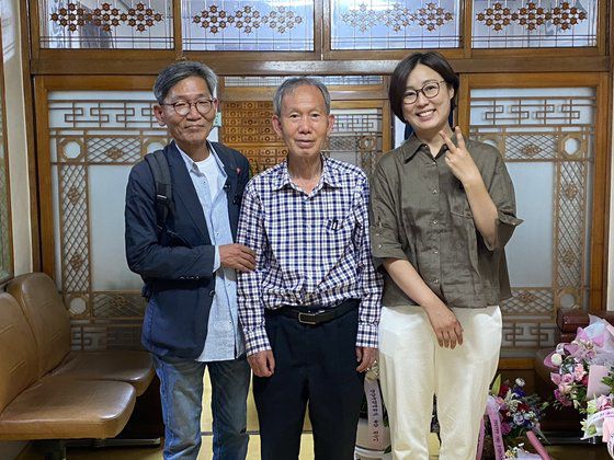 다큐 '어른 김장하'에 출연한 (왼쪽부터) 김주완 기자, 김장하 선생, 김현지 감독. 사진 MBC경남, ⓒ강호진 |
