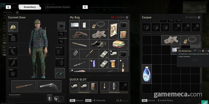 아이템은 장비, 소모품, 투척류, 판매자원 4종류로 나뉜다. 이 중 장비에는 무기와 방어구, 장갑, 신발이 존재하며, 특히 무기의 경우 크게 둔기와 흉기로 구분된다. 특히 둔기는 충격을 주어 좀비의 공격을 차단할 수 있다는 특징이 있다. 이에 기본적으로는 둔기를 사용하되, 상황에 따라 흉기를 활용하는 것이 효과적이다. 이외에는 체력과 포만감 등을 채우는 소모품, 소리로 좀비를 유인하거나 연막을 발생시키는 투척류, 아이템 구매에 필요한 많은 돈을 벌 수 있는 판매 자원이 있다.